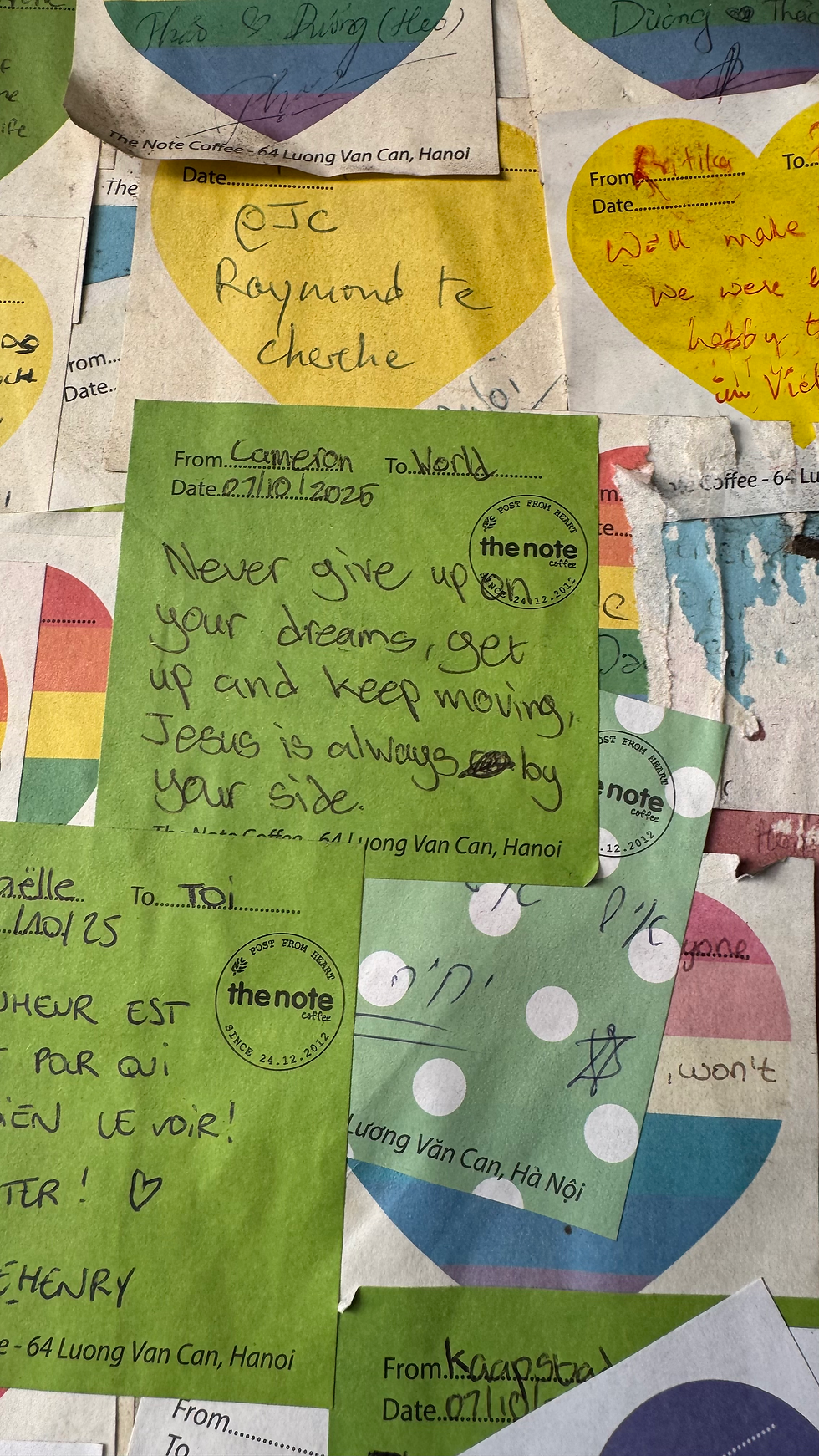 For a decade people visited The Note Coffee and left a word behind. That’s a lot of fingerprints pressed against the walls. Minds thinking out loud to drop or scribble on paper. Strangers leaving words to strangers to encourage them or to connect. When I read these notes it felt like these people were speaking to me directly. I could even hear their accent, distress, hope and peace.